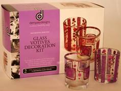 include: 2 glass votives, 1 packet of micro beads, pink glitter glue, pink