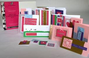 cards, an assortment of sheets of pale blue, shocking pink, pale pink, white,