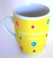 1 white ceramic mug, 4 pots of ceramic paint,1 brush,1 sheet of adhesive